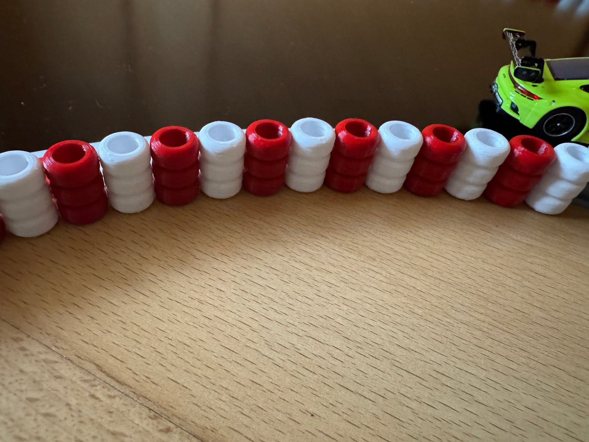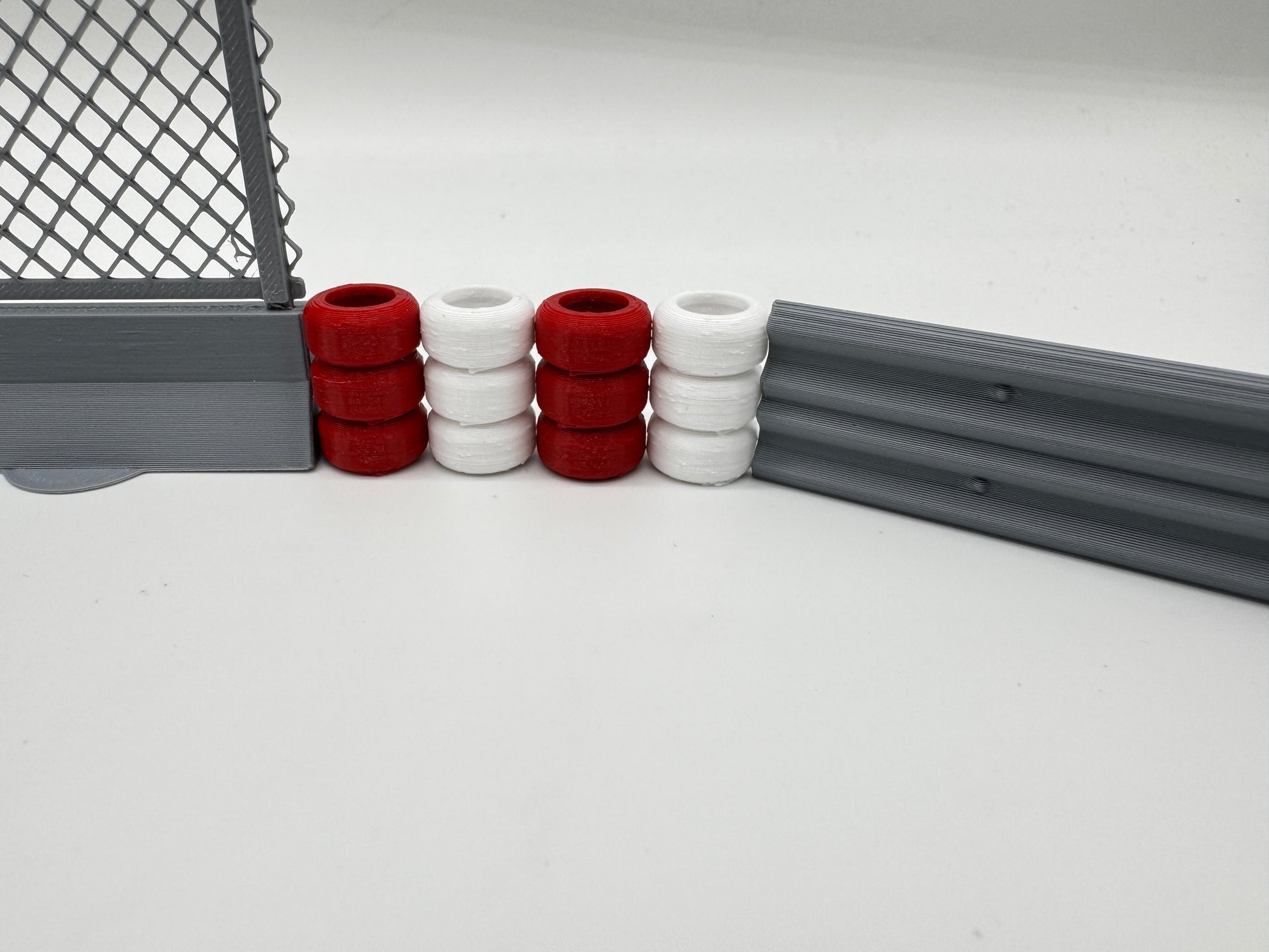 Bestehend aus 15x rot und 15x weißen Reifenstapel.