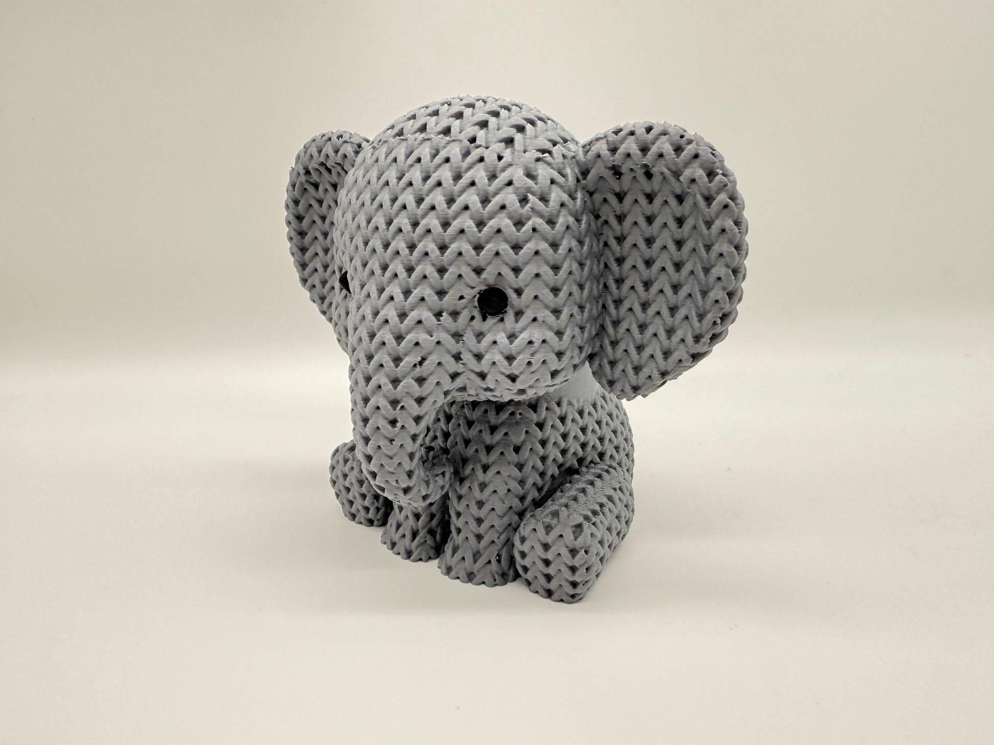 Die Kappe hat den Look von einen gestrickten Elefant.