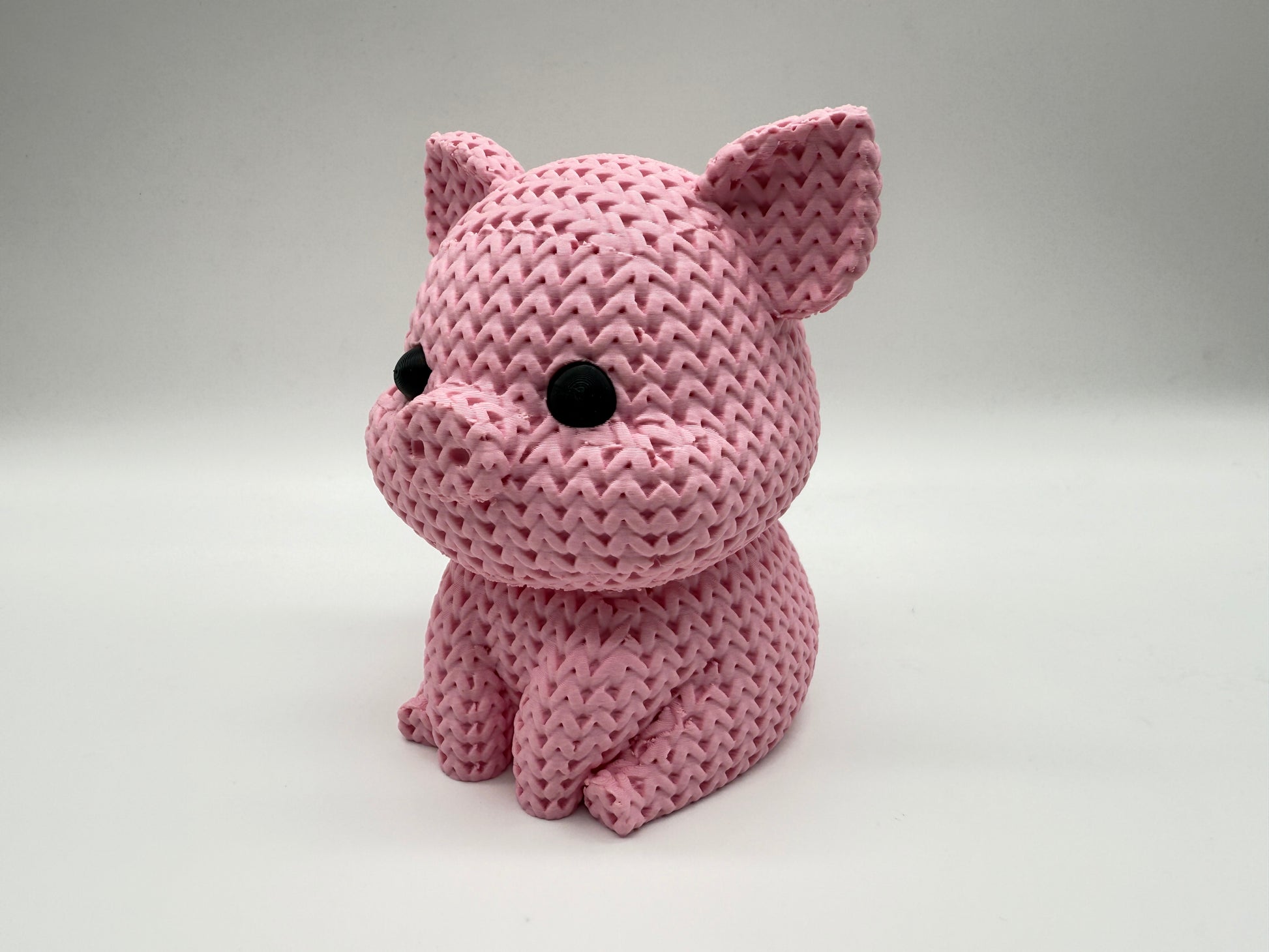Die Kappe hat den Look von einen kleinen, gestrickten Schweinchen.